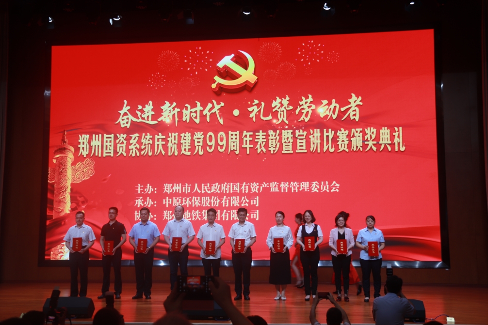 為慶祝中國共產(chǎn)黨成立99周年,重溫黨的光輝歷程,傳承黨的優(yōu)良傳統(tǒng),6月30日下午,鄭州市國資委舉行“奮進(jìn)新時代·禮贊勞動者”——鄭州國資系統(tǒng)慶祝建黨99周年表彰暨宣講比賽頒獎典禮,集團(tuán)黨委書記、董事長萬永生,監(jiān)事會主席李靜波,以及集團(tuán)優(yōu)秀基層黨組織、優(yōu)秀共產(chǎn)黨員、優(yōu)秀基層代表、獲獎節(jié)目代表等共計20余人參加此次頒獎典禮。