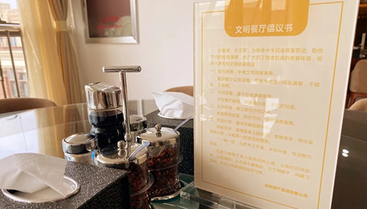 全集團要積極傳承中華民族優(yōu)秀飲食文化和尊重勞動、珍惜糧食、勤儉節(jié)約的傳統(tǒng)美德,大力弘揚勤儉節(jié)約、艱苦奮斗的崇高精神,積極倡導“文明就餐,杜絕浪費”的用餐文化,營造“節(jié)約光榮、浪費可恥”的良好氛圍。
