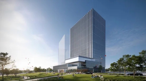 城發(fā)中心以“嵩山書頁巖”為設(shè)計(jì)理念,以中空LOW-E玻璃打造極簡幕墻立面,玻璃寬約3米,隱藏式開啟窗。