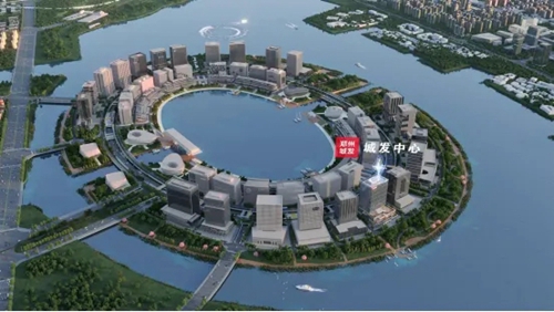 金融島,位于鄭州北龍湖中部核心,由雙環(huán)44棟高層建筑圍合而成,以3.7公里宛如玉帶的南北運(yùn)河為連接,與CBD共同形成寓意吉祥的“如意”造型。