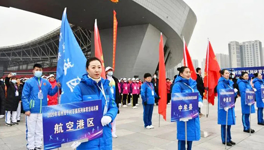 12月8日上午9時,2020年鄭州市“千村百鎮(zhèn)”系列體育活動決賽在鄭州奧體中心舉行。鄭州市體育局副局長蔣濤、鄭州市農(nóng)村與農(nóng)業(yè)委員會調(diào)研員王選順、河南鄭地奧體中心管理有限公司總經(jīng)理王新華、鄭州市體育局群體處處長楊書友、部分縣區(qū)(市)代表隊(duì)負(fù)責(zé)人以及全市各縣區(qū)(市)的運(yùn)動員代表一千余人參加活動啟動儀式。