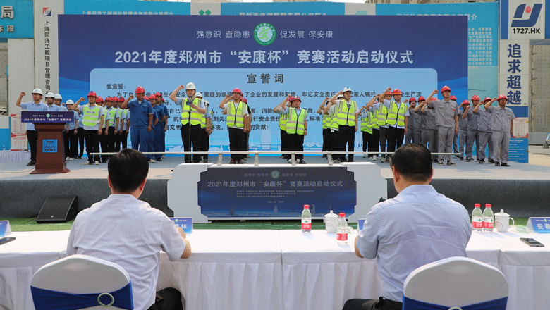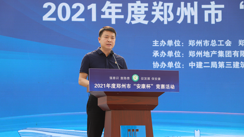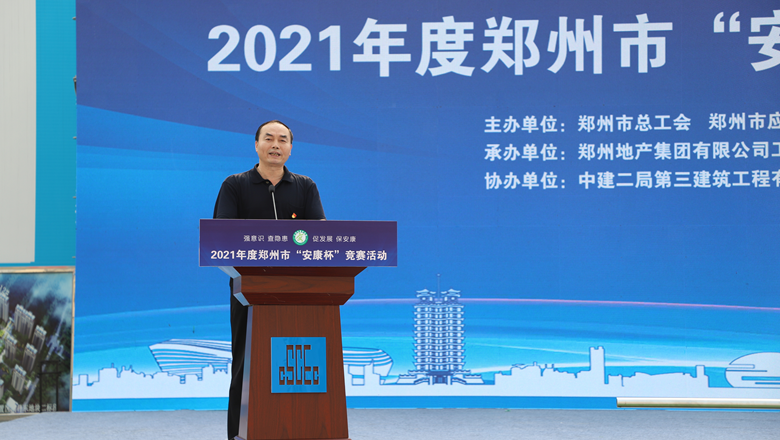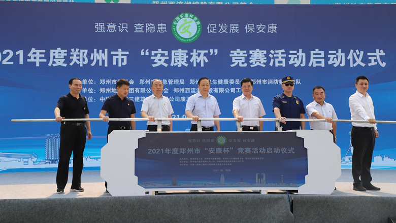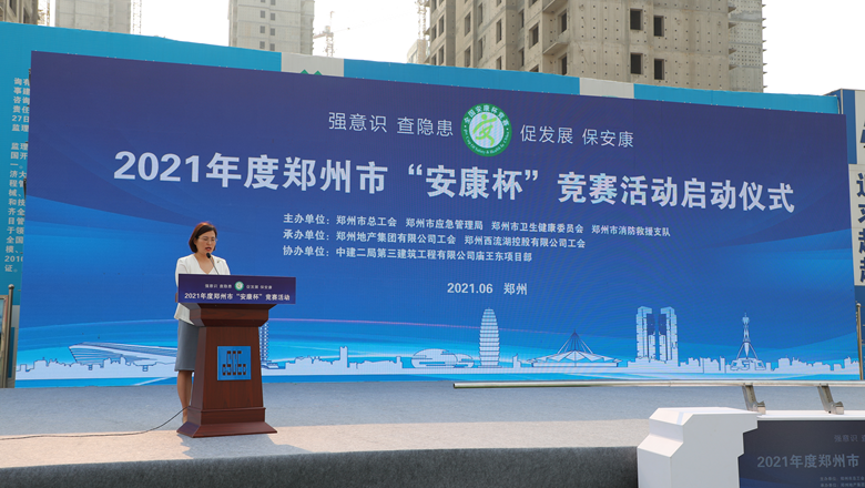 為深入貫徹落實習近平總書記有關加強安全生產(chǎn)工作的部署和要求,進一步強化各級各部門、各企業(yè)主體的安全責任意識,確保我市安全生產(chǎn)形勢持續(xù)好轉,職工安全健康不斷鞏固。6月11日上午,由鄭州市總工會、鄭州市應急管理局、鄭州市衛(wèi)生健康委員會及鄭州市消防救援支隊主辦,鄭州地產(chǎn)集團工會、鄭州西流湖控股有限公司工會承辦的鄭州市2021年“安康杯”競賽啟動儀式在中原新區(qū)廟王東安置區(qū)項目成功舉行。鄭州市相關組織部門、市總工會成員單位、地產(chǎn)集團、西流湖公司、各參建單位共200余人參加啟動儀式。鄭州市一級巡視員,市總工會黨組書記、主席趙新中、鄭州市衛(wèi)生健康委員會黨組成員、二級調(diào)研員楊德林、鄭州市應急管理局三級調(diào)研員安春茂、鄭州市消防救援支隊副支隊長、滅火救援指揮部部長李隆、鄭州市總工會副主席宋少丹、鄭州地產(chǎn)集團有限公司監(jiān)事會主席、工會主席李靜波、鄭州地產(chǎn)集團西流湖公司黨支部書記、董事長、總經(jīng)理 吉獻亮,中建二局第三建筑工程有限公司西北分公司黨委副書記、執(zhí)行總經(jīng)理趙海軍出席儀式。啟動儀式由市總工會勞動和經(jīng)濟部部長宋慧主持。